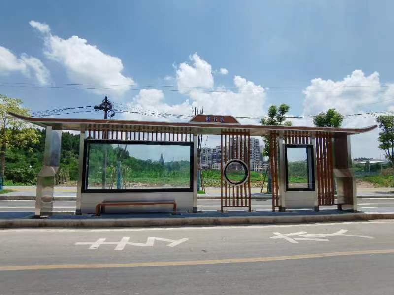 遂寧新型不銹鋼公交站臺設計方案,以不銹鋼和木紋材質(zhì)為肌理,結(jié)合現(xiàn)代、古樸的造型特點,融合地域特色,體現(xiàn)布局通透、明朗的驛站風景。不再是過去單一單調(diào)的以廣告燈箱為主的站臺風格。